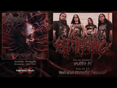 From the opening attack of 'Splatter Pit', where the band gorge themselves on speed and blast beats, to the menacing grind of 'Gutted By The Beast' which closes this collection with measured, pulverising heaviness, Ravenous Psychotic Onslaught is a master class in sonic violence. Stabbing have tapped directly into the pulmonary artery of brutal death metal, siphoning off its most vital elements; sickening grooves, oppressive, suffocating riffs, wicked hooks, terrifying vocals and finely crafted songs. Rarely has such utter extremity been carved into such memorable musical forms. Ravenous Psychotic Onslaught is a genre defining release which will surely usher in a career of supreme carnage for Stabbing.Now aligned withComatose Musicthe stage is set for Stabbing to begin their campaign of terror and onDecember 10thRavenous Psychotic Onslaught will be unchained. This is the beginning of something bloody and beautiful...give yourself up to the knife!