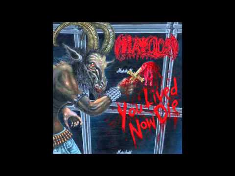 "Come To Salem" meets that standard with macabre guitar leads and ominous vocals thanks to the multi-layered effects, a band that can use the studio as an instrument is easily twice that of a band that can't. The Solo can be summed up by 'very 80s' on "Hail All Evil" in the context of such dark material it oddly feels original and refreshing. As an Atheist (always wanted to say it) "Piss In Holy Water" is a fun playful track, but taken seriously could get kicked out of your nephew's christening. The title track "You Lived Now Die" reminds me of CRASS due to the vocal speed and is a true brutal anthem to be listened to at neighbour bothering volumes. The Duo of "Baptised In Vomit" and "Demonwhore" are exactly what you expect, short vile songs to offend to civilised humanity done right.