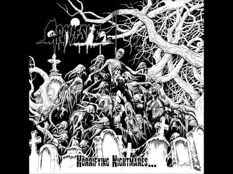 Occasionally, you'll run across some doomy riffs but there's a lot of variation with the tempo. Sort of like a more hyper MORBID ANGEL. It seems to constantly change between fast and mid pace with an occasional slower part. The "Horrifying Nightmares" album is also not without its own original ideas. There are some solos but they are scarce. It's chaotic force quivers the skin and fuels adrenaline. It sounds more modern.